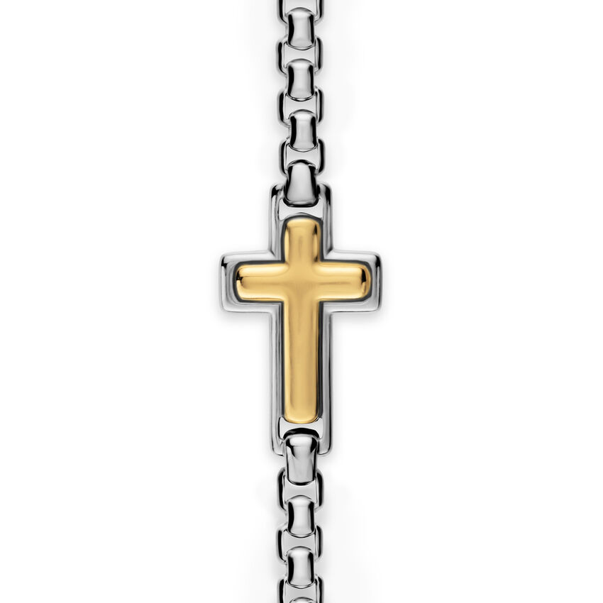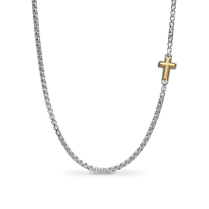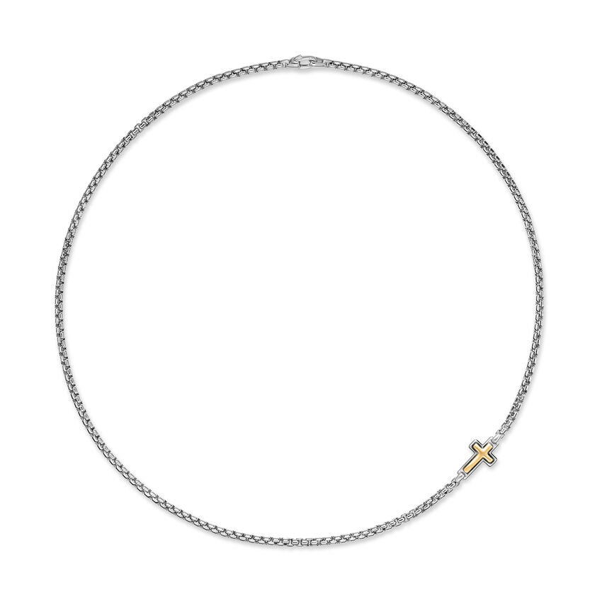 Cross Station Necklace in Sterling Silver with 14K Yellow Gold, 3.6mm