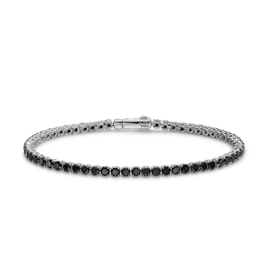 Tennis Bracelet in 18K White Gold with Black Diamonds, 3mm
