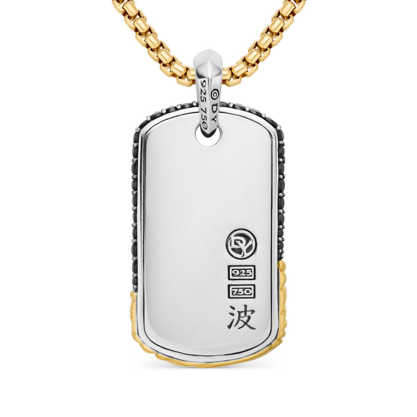 Sterling silver with 18-karat yellow gold • Pavé black diamonds, 3.09 total carat weight • Tag, 39 x 20.2mm • Please note: tag only; chain sold separately