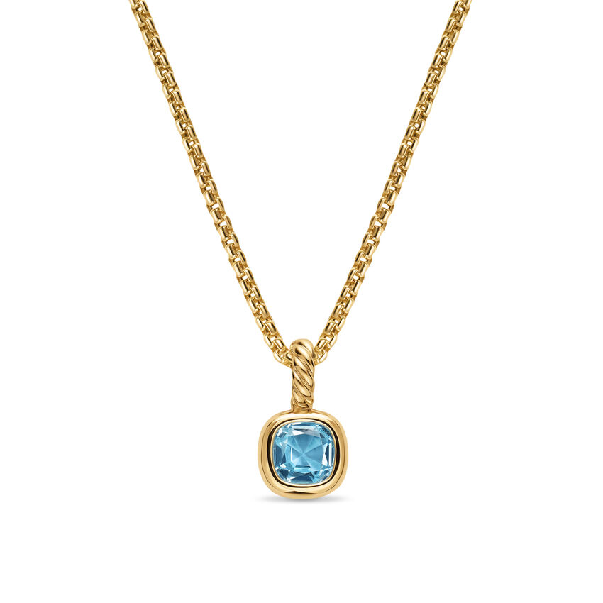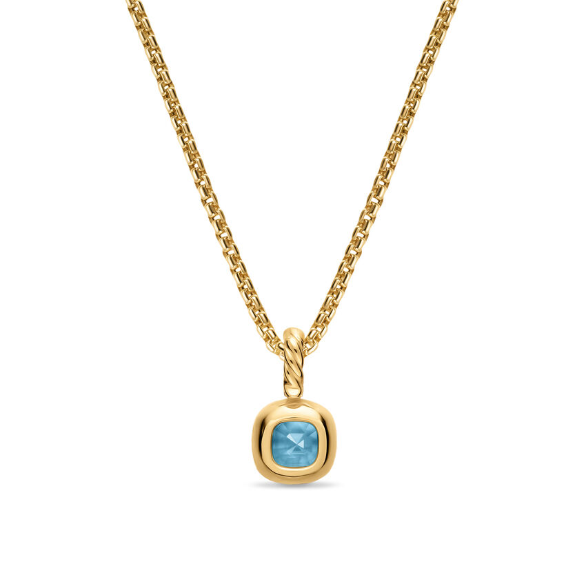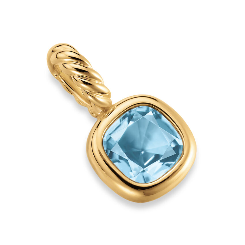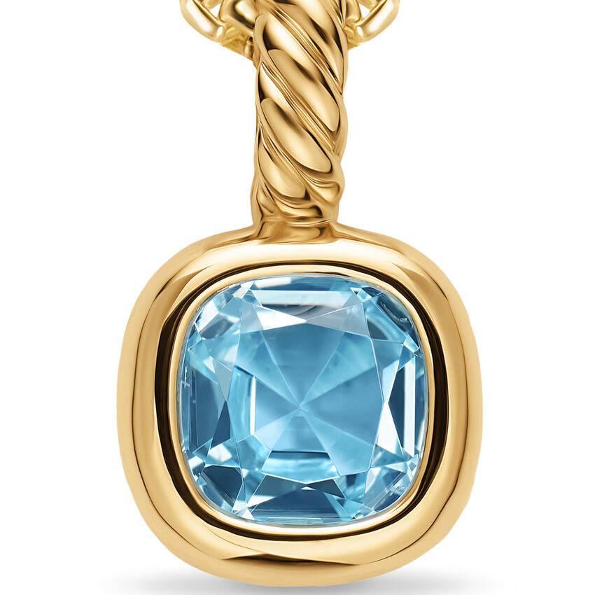 Mini Cushion Cut Amulet in 18K Yellow Gold with Sky Blue Topaz, 7.6mm