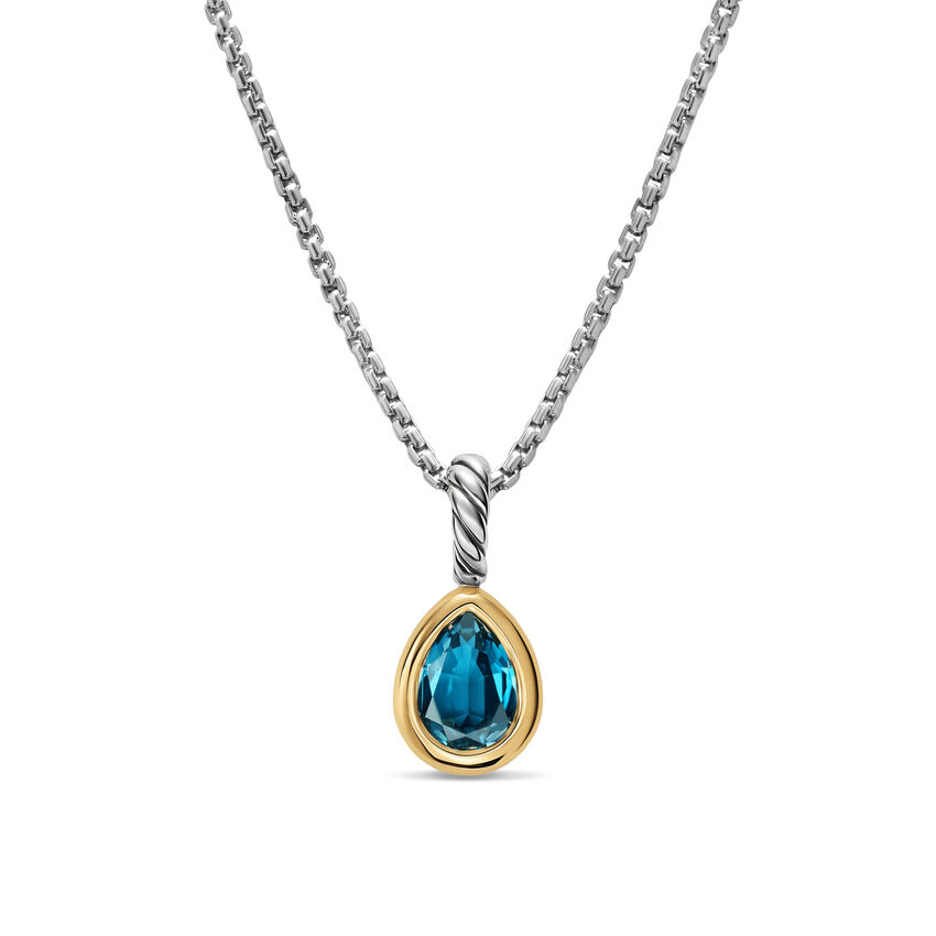 Mini Pear Cut Amulet in Sterling Silver with 14K Yellow Gold and Hampton Blue Topaz, 11mm
