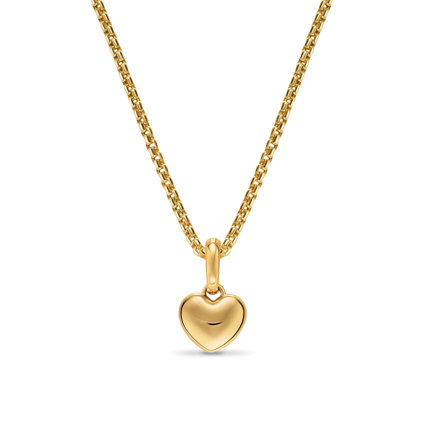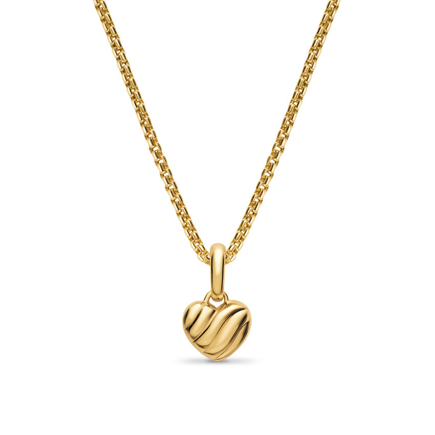 Petite Puffy Cable Heart Amulet in 18K Yellow Gold, 7.4mm | Leonardo's Jewelers