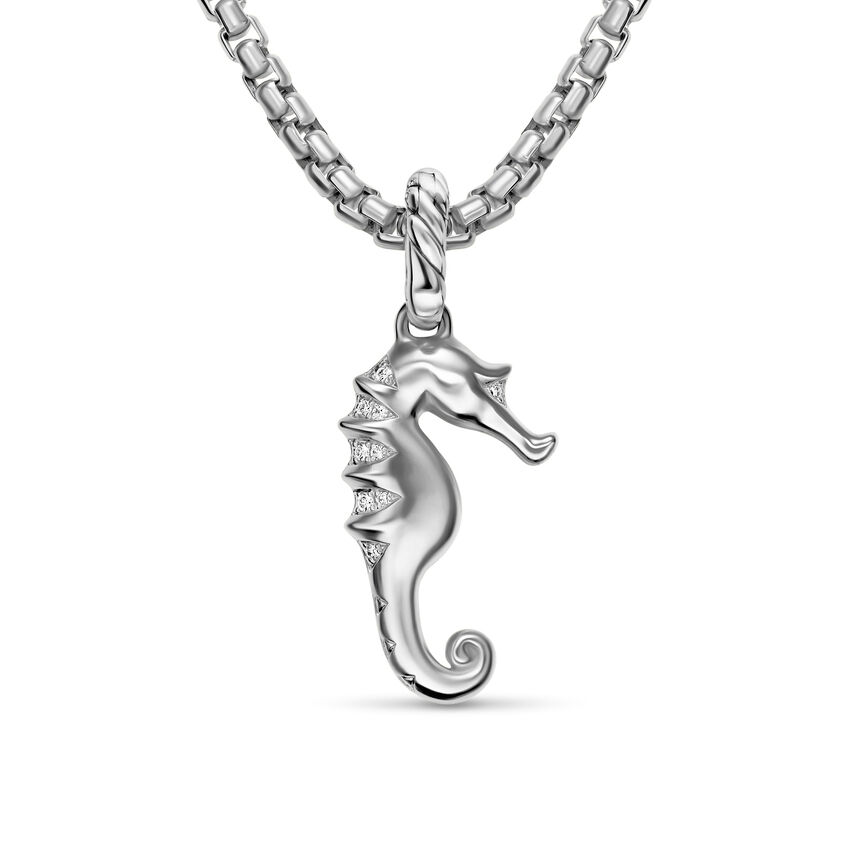 Seahorse Amulet in Sterling Silver with Diamonds, 22mm | Leonardo's Jewelers