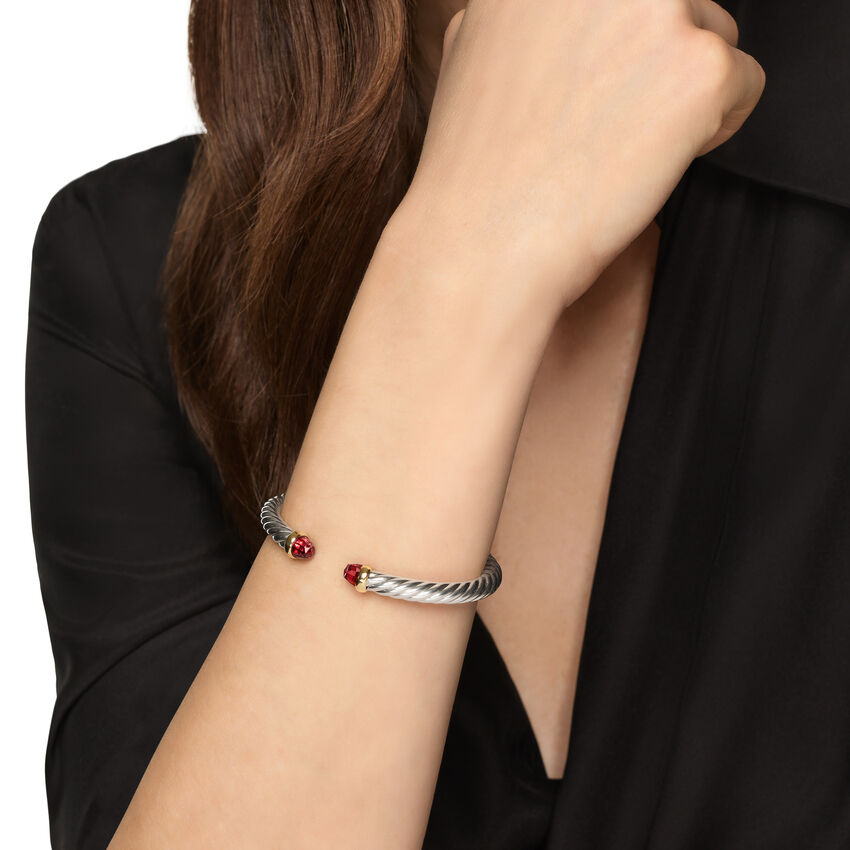 Cable Flex® Bracelet in Sterling Silver with 14K Yellow Gold and Rhodolite Garnet, 6mm | Leonardo's Jewelers