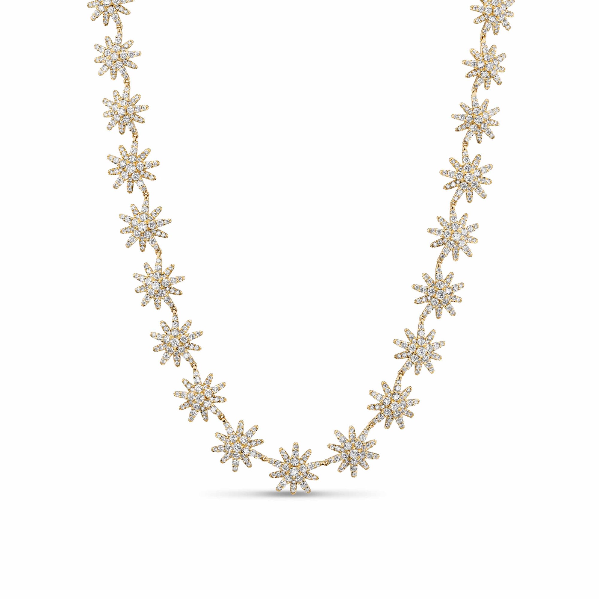 Starburst Tennis Necklace in 18K Yellow Gold with Diamonds, 12.5mm