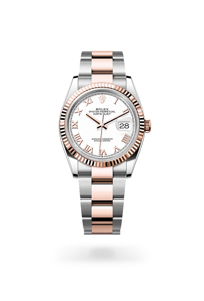 Celebrating the 40th anniversary of Rolex in 1945, the Jubilee bracelet was specially designed for the Datejust. This fluid and comfortable five-piece link metal bracelet is integral to the Datejust’s identity and enhances the timeless elegance of the model. The Datejust is also available with an Oyster bracelet or, on precious metal versions, a President bracelet.